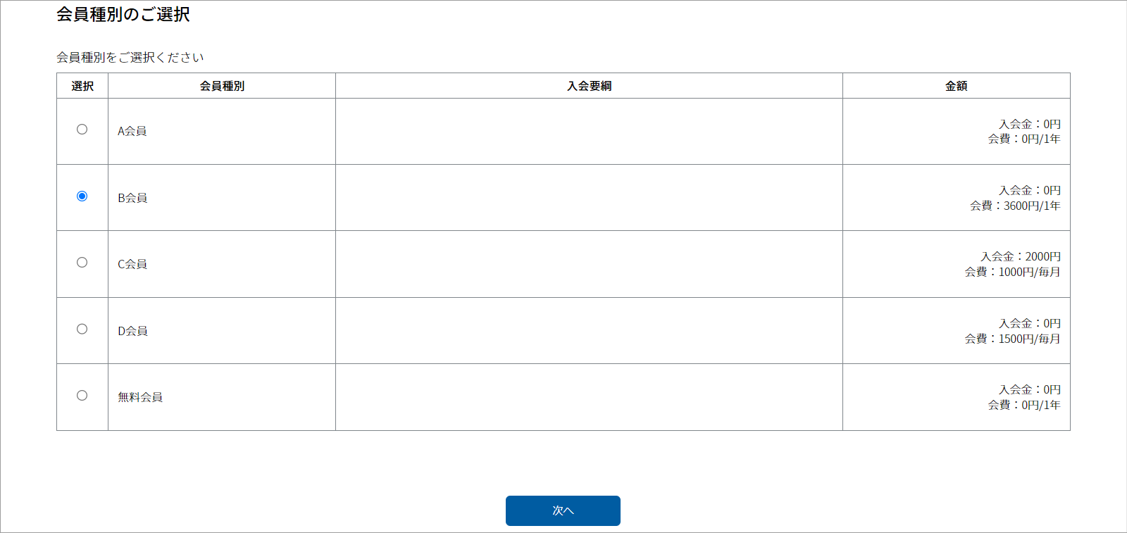 会員種別を選択する