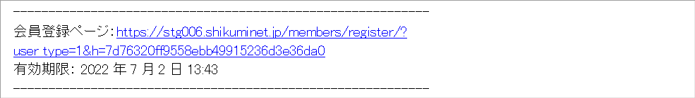 ①『新規会員登録のご案内』メール内の「会員登録ページ URL」をクリックします。